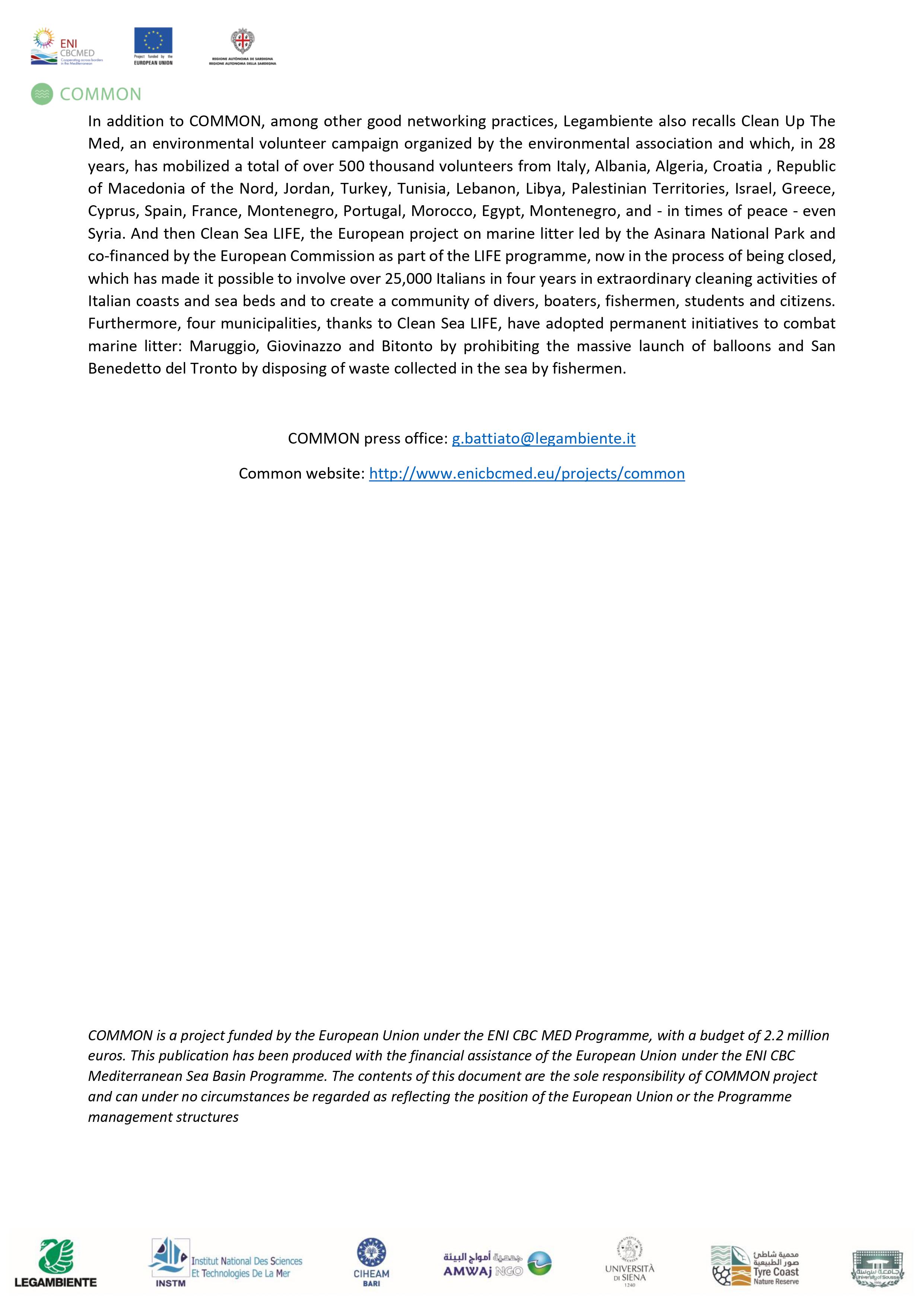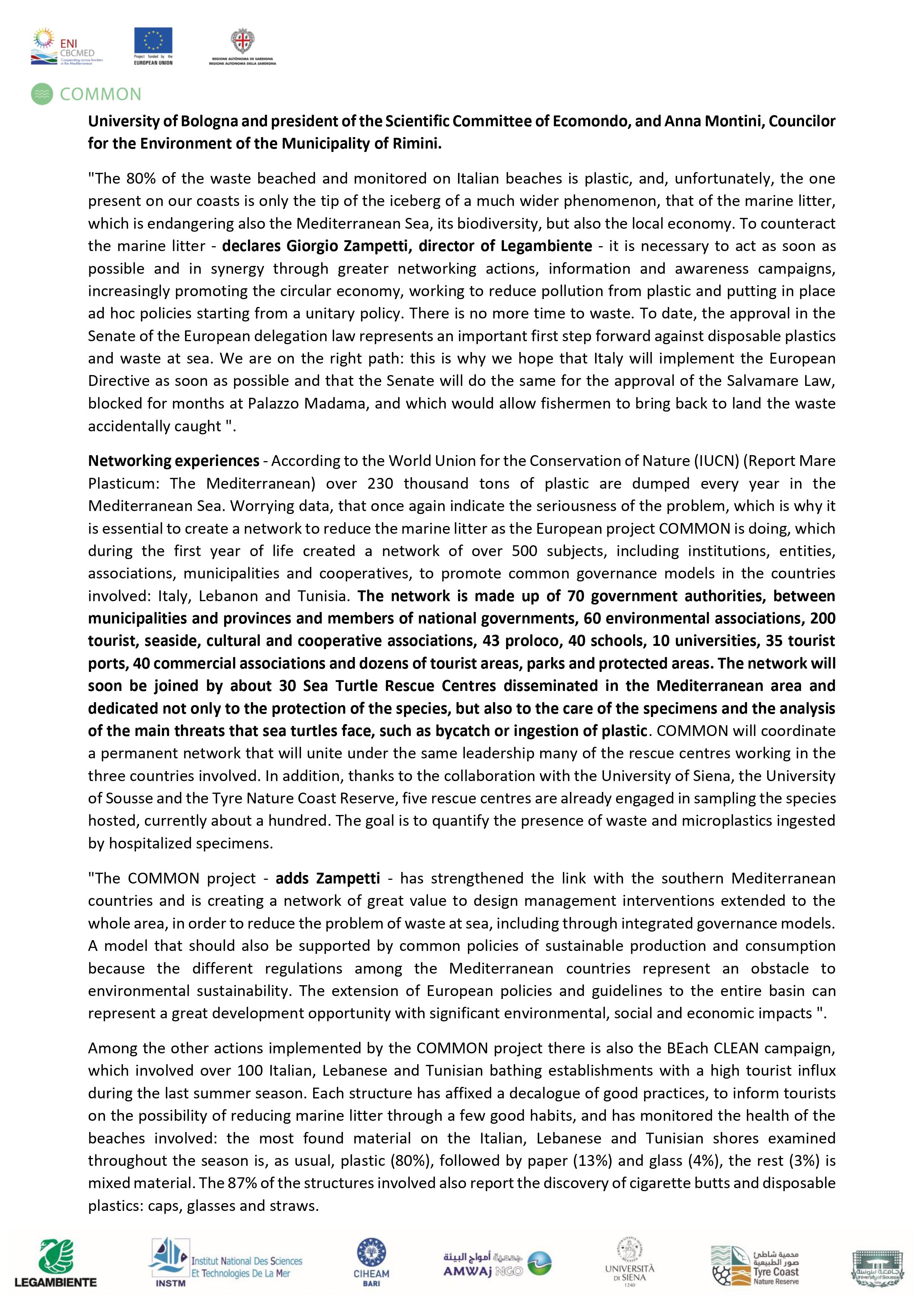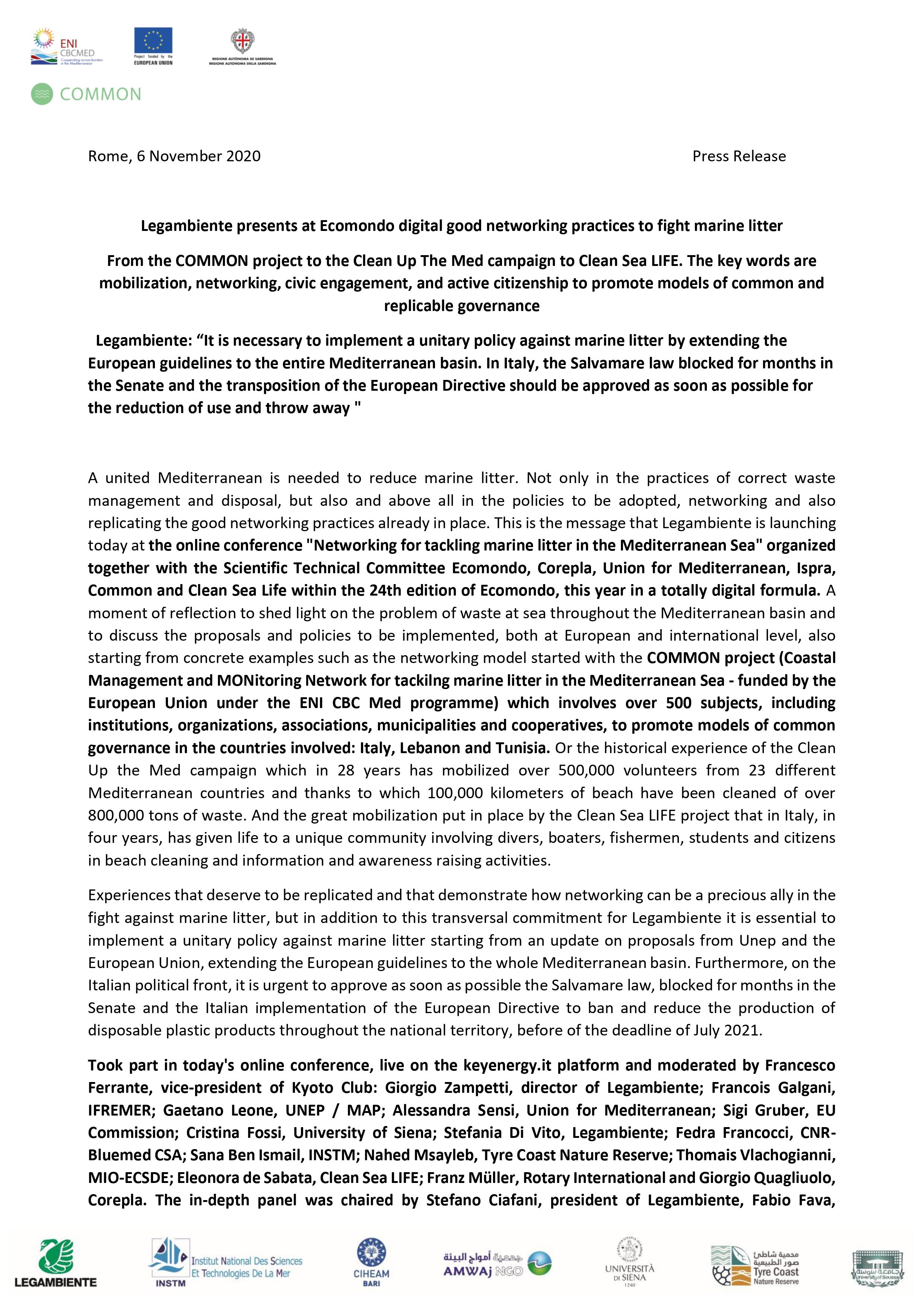 Le communiqué de presse officiel concernant la participation du Common - Med Project à la conférence digitale Ecomondo .
