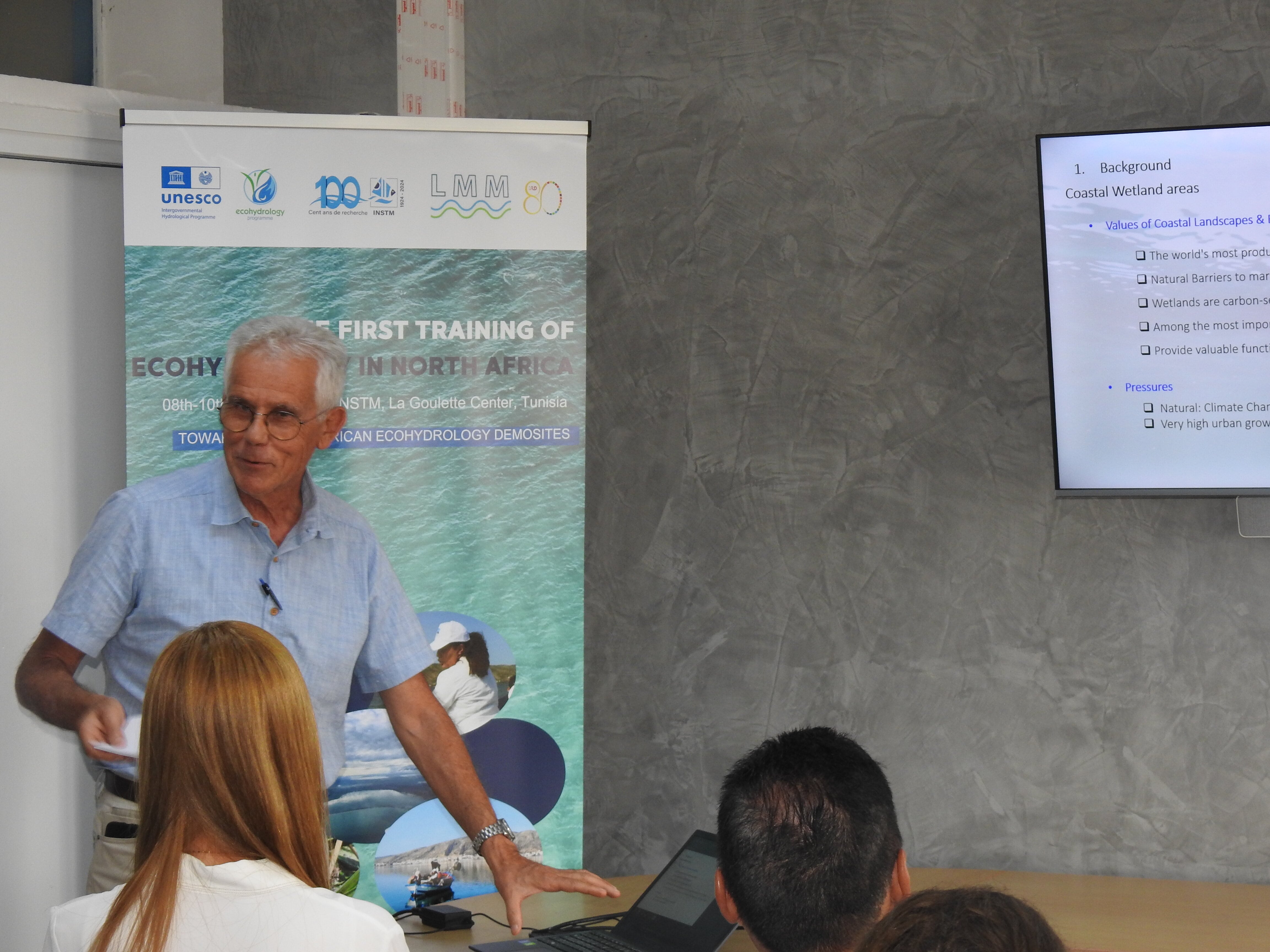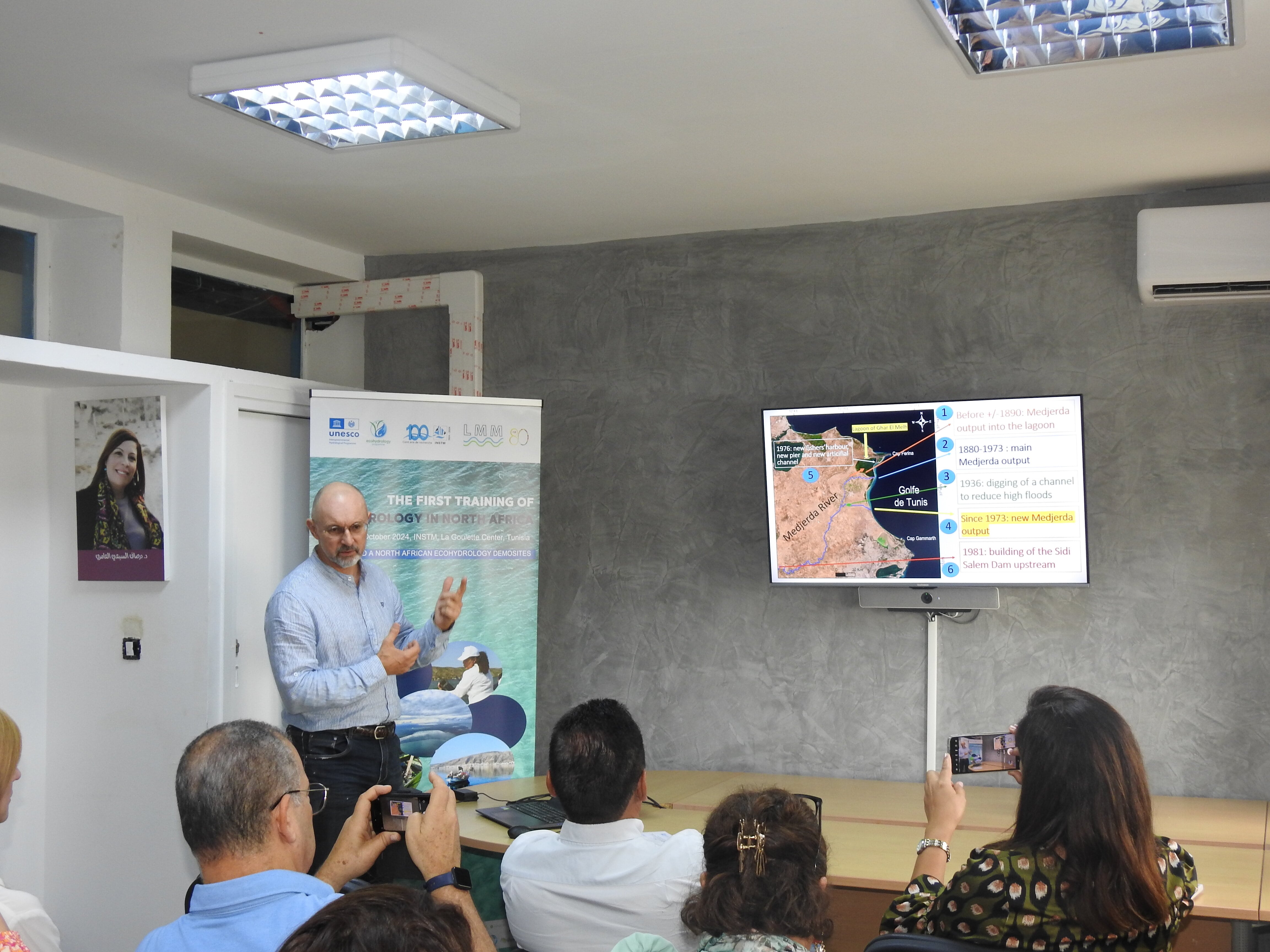 Dans le cadre des activités de recherche de l'Institut National des Sciences et Technologies de la Mer (INSTM) en collaboration avec l'UNESCO-IHP, en occurrence les actions de l’Observatoire côtier OMELI (MEdjerda LIttoral) Ghar El Melh, l’INSTM a organisé une formation en ecohydrlogie « ECOTRAIN » : "The Ecohydrology Training “ECOTRAIN” course on ecology and biodiversity of anthropized lagoons under climate changes effects: case of Ghar El Melh lagoon (UNESCO Demosite)", Cet événement s'est tenu du 8 au 10 octobre 2024, au centre de la Goulette, en Tunisie.