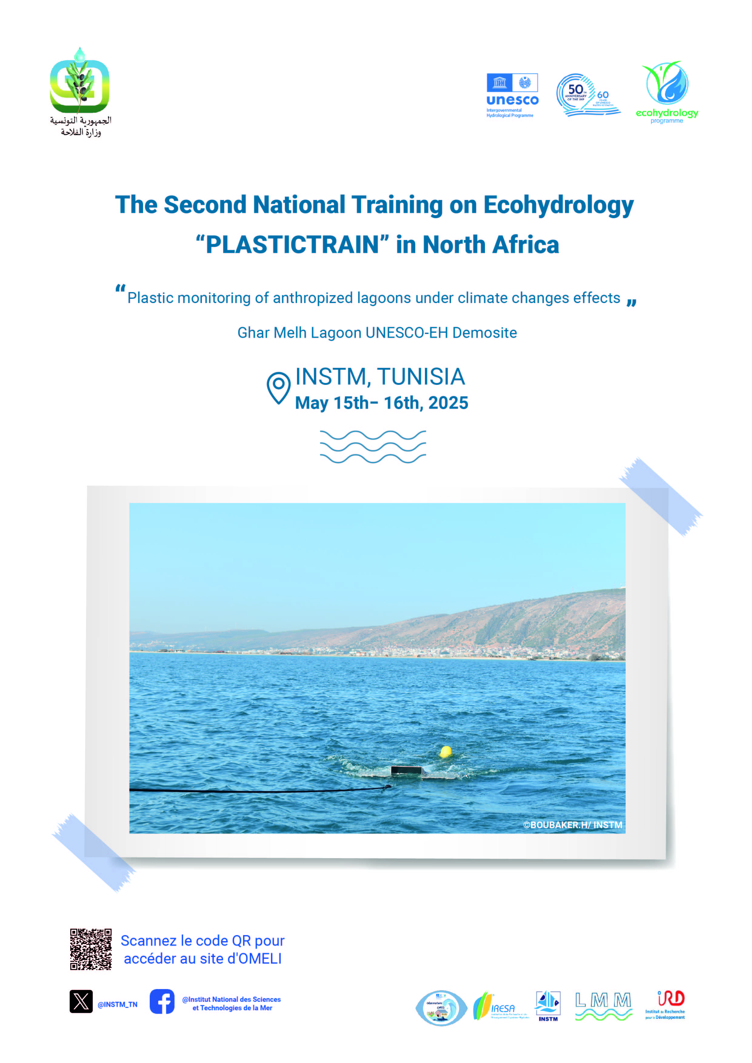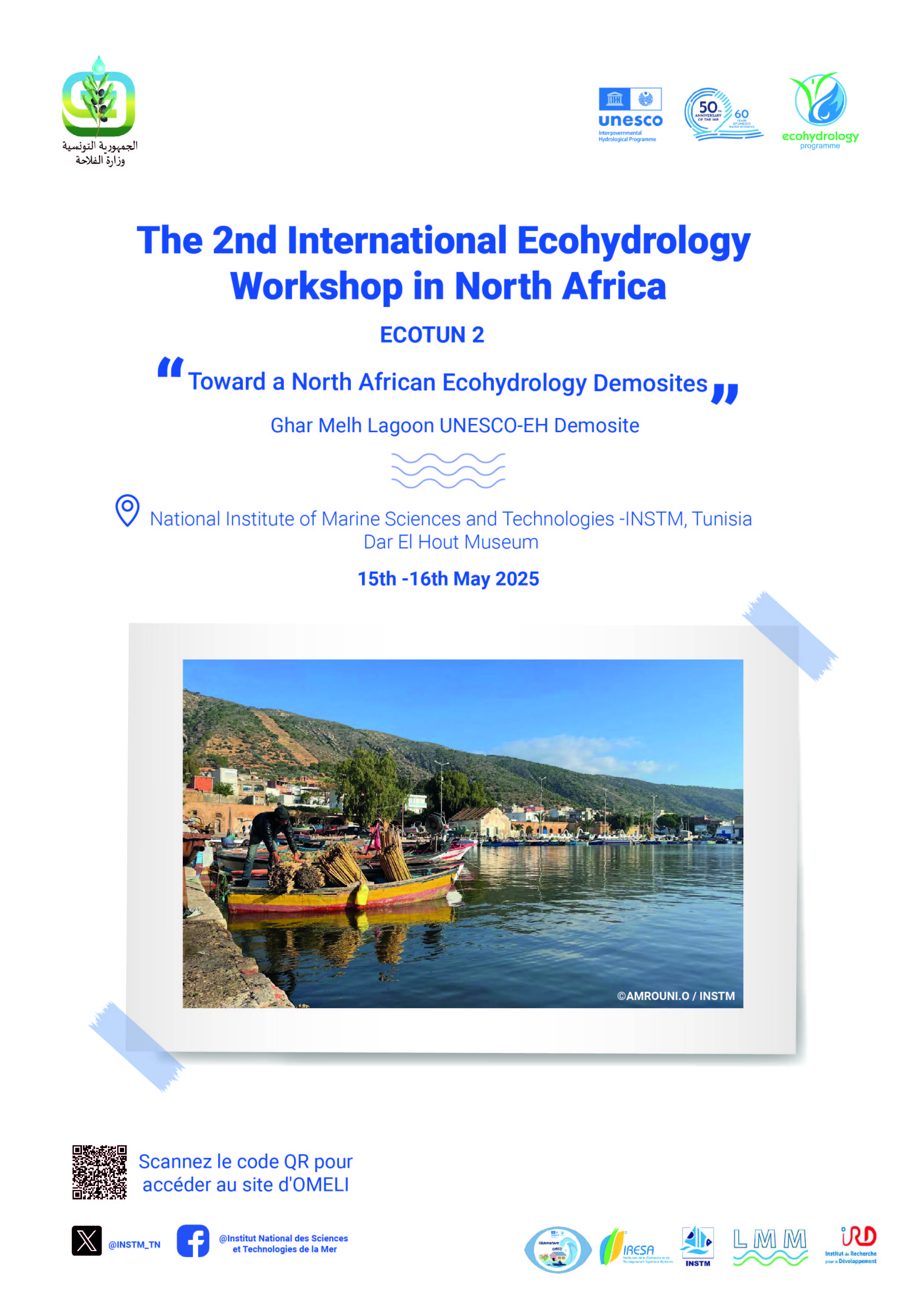 Ces manifestations se tiendront les 15 et 16 mai 2025 au siège de l’INSTM à Carthage Salammbô, Tunis, suivie d'une journée de terrain au site de démonstration de l'Observatoire OMELI classé site pilote par l'UNESCO- Eau