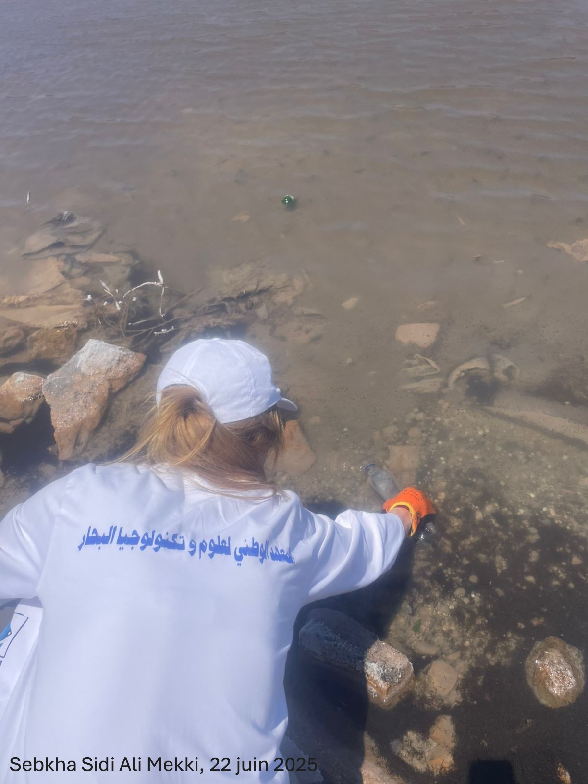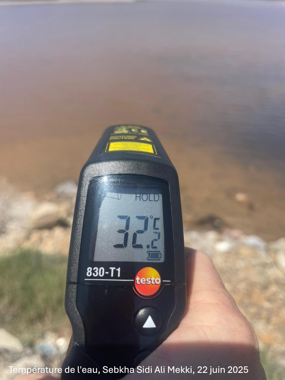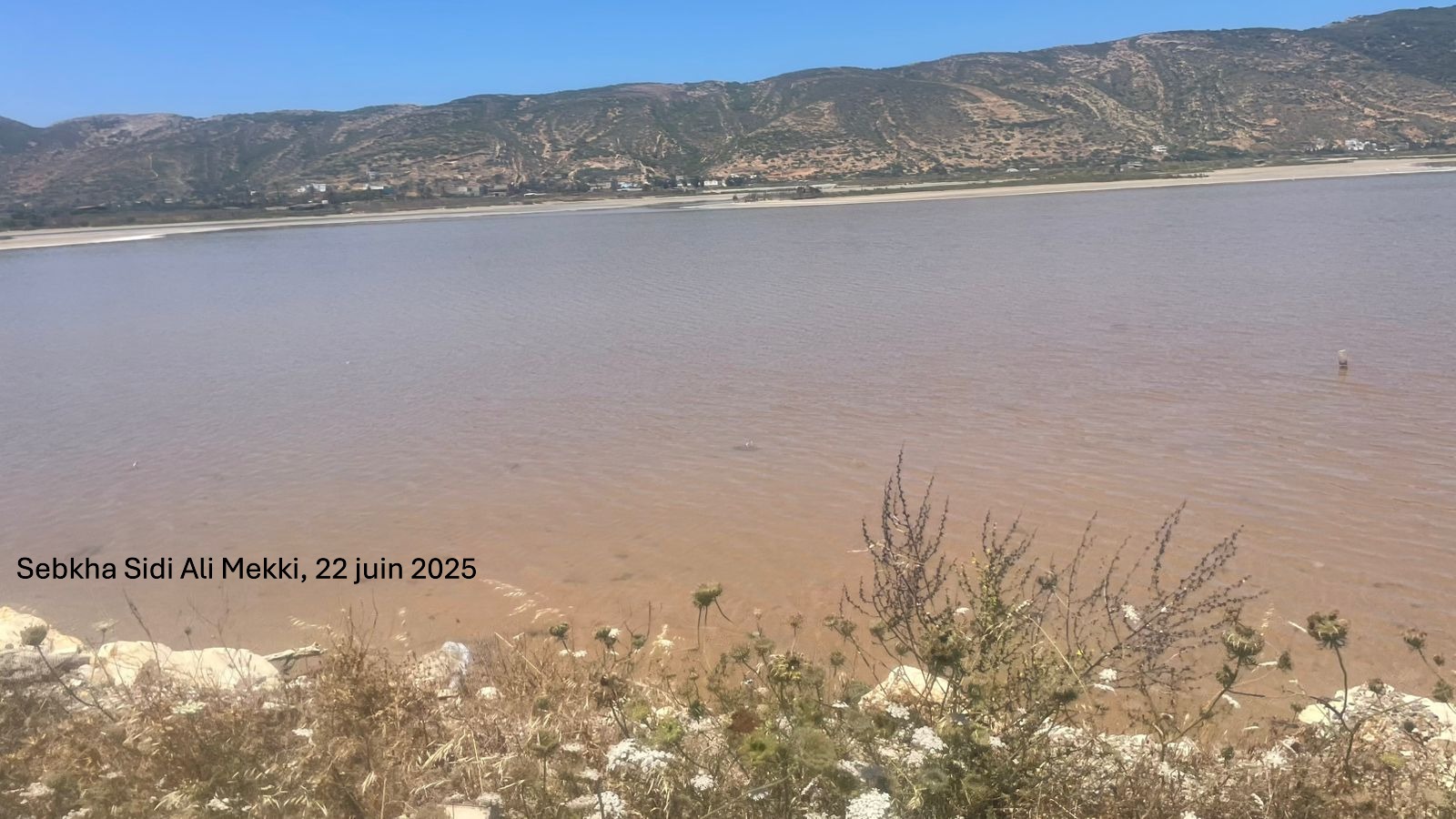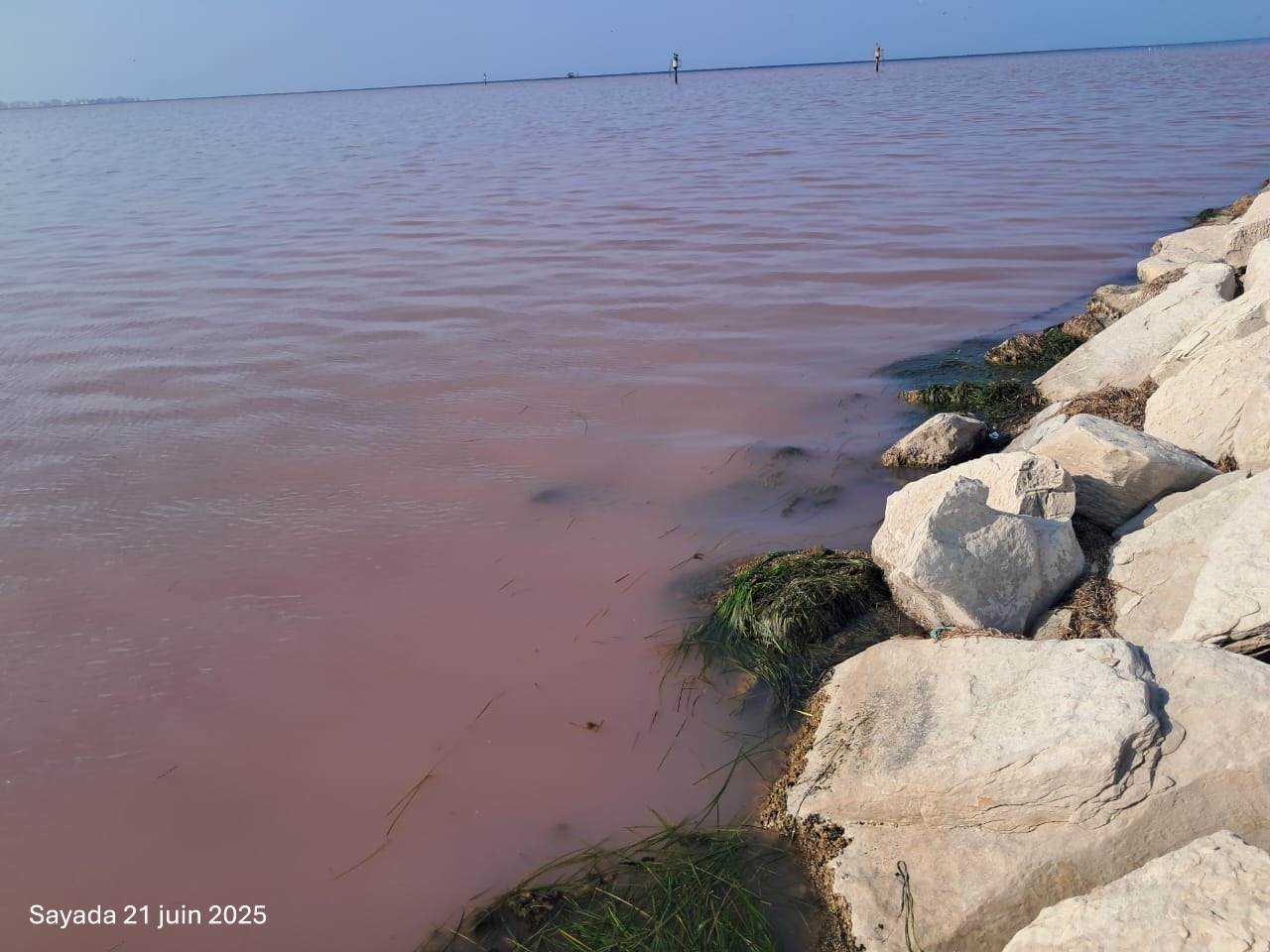 2- Dans la région de Ghar El Melh : Le samedi 21 juin 2025, une coloration inhabituelle des eaux a été observée dans la sebkha de Sidi Ali Mekki. Face à cette situation, une équipe de l’INSTM (Salammbô et la Goulette) s’est rendue sur place le , pour prélever des échantillons d’eau et de sédiments. L’objectif est de comprendre les causes de cette coloration et d’évaluer les éventuels impacts sur l’environnement marin. Des températures de l’eau mesurées, varient entre 26 et 32°C, ont été relevées sur la zone. Ces conditions, combinées à d’autres facteurs naturels ou anthropiques, pourraient avoir favorisé le développement massif de microalgues.